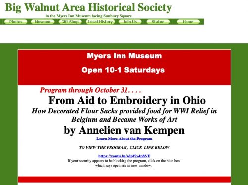 Commissioned by the Big Walnut Area Historical Society, I made an English PowerPoint presentation, based on my blog “From Aid to Embroidery in Ohio, USA”.