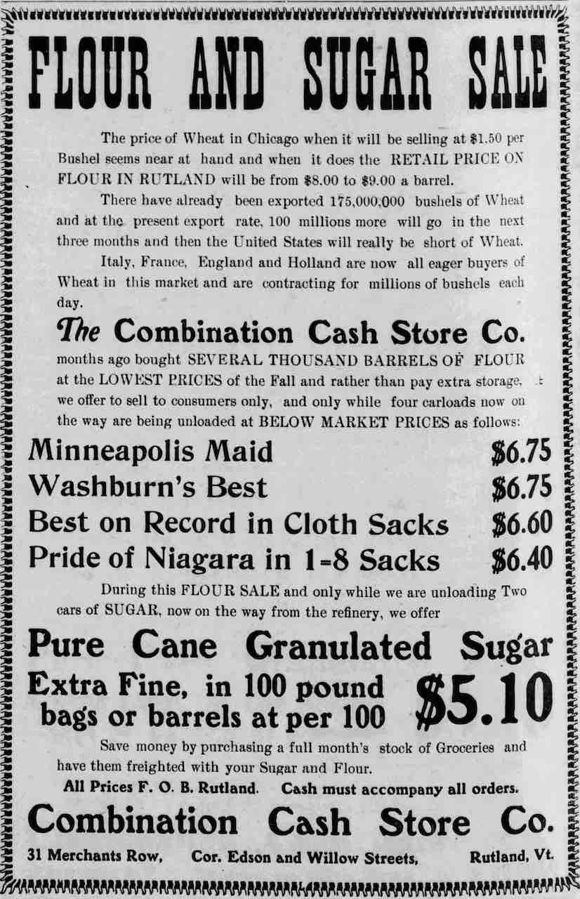 ‘Pride of Niagara’ in een Amerikaanse advertentie voor bloem en suiker. The Fair Haven Era (Fair Haven, Vermont), 31 december 1914