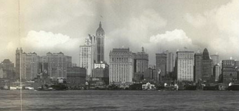Een foto van 1908 toont de toenmalige skyline van New York, bezien vanaf de Hudson. [13]