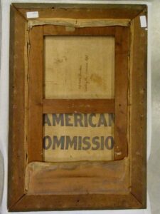 Tony van Os ondertekende met T.V.O. in de linkeronderhoek. Daar staat ook de zin: GRATITUDE OF THE PAINTER TO THE AMERICAN COMMISSION (Dankbetuiging van de schilder aan de American Commission).