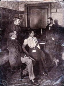 Lalla and Emile Vandervelde (right), with two German socialist friends. Maison du Peuple, Brussels, Friday April 18, 1902. Photo: photoagency Zander & Labisch, coll. Deutsche Fotothek. *)